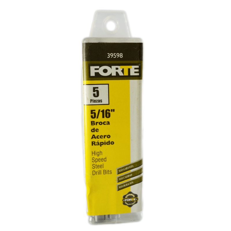 Las Nuevas Brocas FORTE® de Acero rápido son una gran alternativa a las marcas tradicionales para hobbistas, profesionales y contratistas, debido a su excelente relación de calidad y precio. Fabricadas con acero rápido de alta calidad, tienen unidades rendimiento ideal sobre Aceros suaves, Laminas, Hierro fundido, bronce, aluminio, plástico, madera y PVC. Adicional, los Empaques plásticos contienen menos cantidad de brocas por estuche que otras marcas.