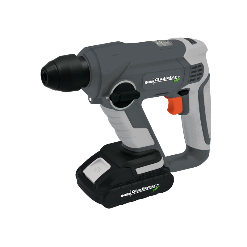 Rotomartillo Inalambrico 18V SDS PLUS de 1.1 Joules. Velocidad en vació hasta 900 RPM. Capacidad en hormigón 12mm – 15/32?, capacidad acero 8mm – 5/16?, capacidad madera 16mm – 5/8?. Tensión nominal 18V. Tensión máxima 20V. Impacto por minuto 0-4300. Peso 3kg. Incluye 1 batería 2Ah y 1 cargador (En caja de cartón)
