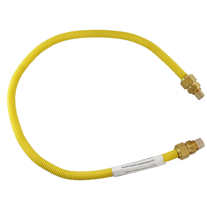 CONECTOR FLEX. CORRUGADO ½ X ½ NPT LONG 100cm-39pulg Usados en instalaciones de artefactos a gas que utilicen GLP (fase vapor), aire con mezcla de gas propano o gas natural. Materiales: Manguera: Acero inox. 304 / recubrimiento polímero Clip: Nylon, Conexiones: Latón, Empaques: Caucho Nitrilo Diámetro nominal (DN): 12 mm, Temperatura: hasta 50ºC Norma de referencia: NTC - 3561 / NTC - 4354