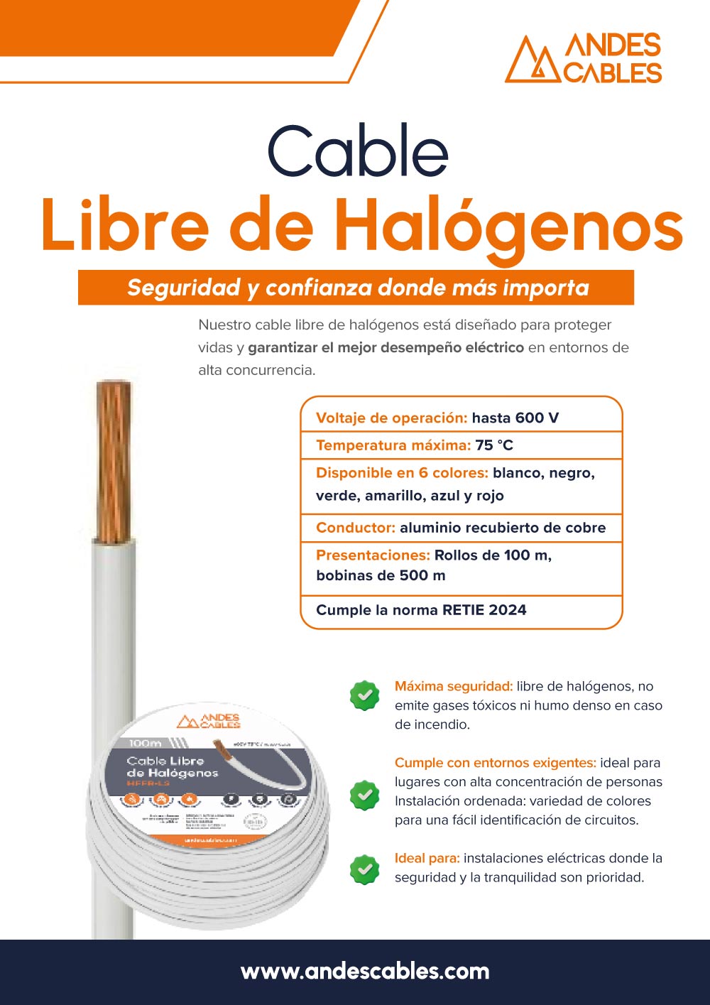 Cable Libre de Halogeno HFFR -LS Tensión nominal 600 V. Temperatura de operación 75ºC, Embalaje en rollos de 100 metros. Multihilos, presentación en Rollo.