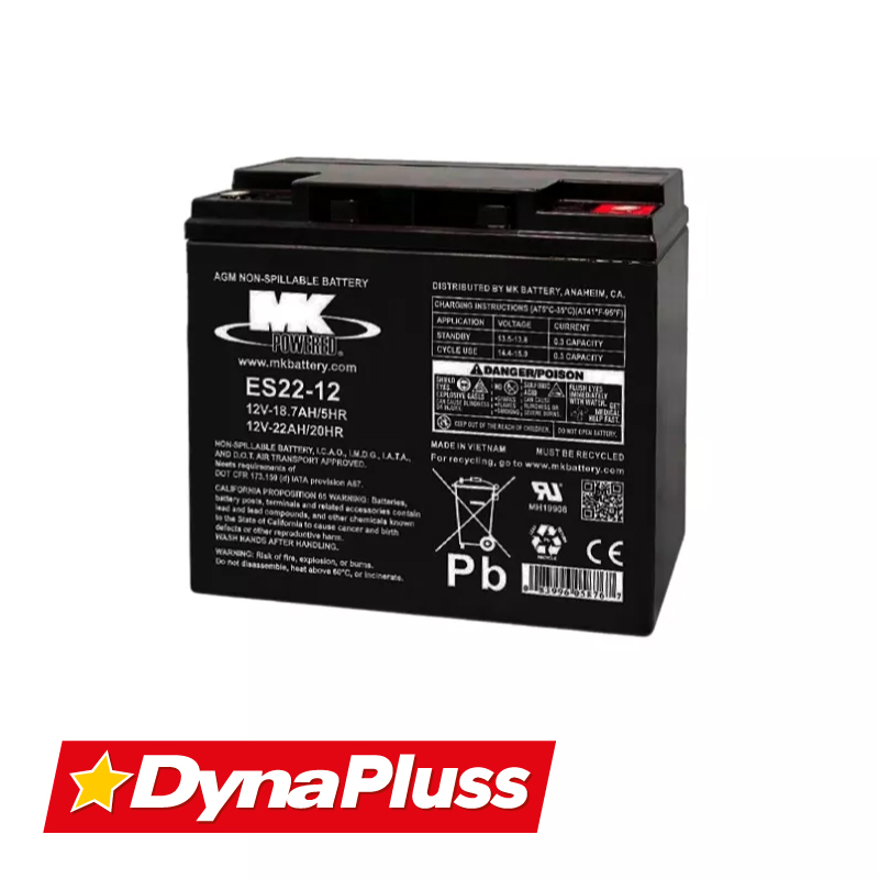 Tipo de batería AGM. Voltaje 12V. Capacidad 22Ah. Dimensiones: Longitud 76 mm, Ancho 180 mm. Altura 180 mm, Peso Aprox. 7.1 kg.