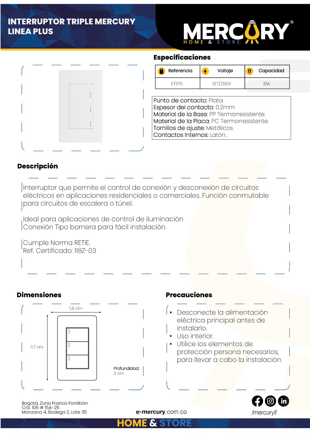 4. Interruptor Triple Conmutable de Incrustar Plus Blanco ETI176