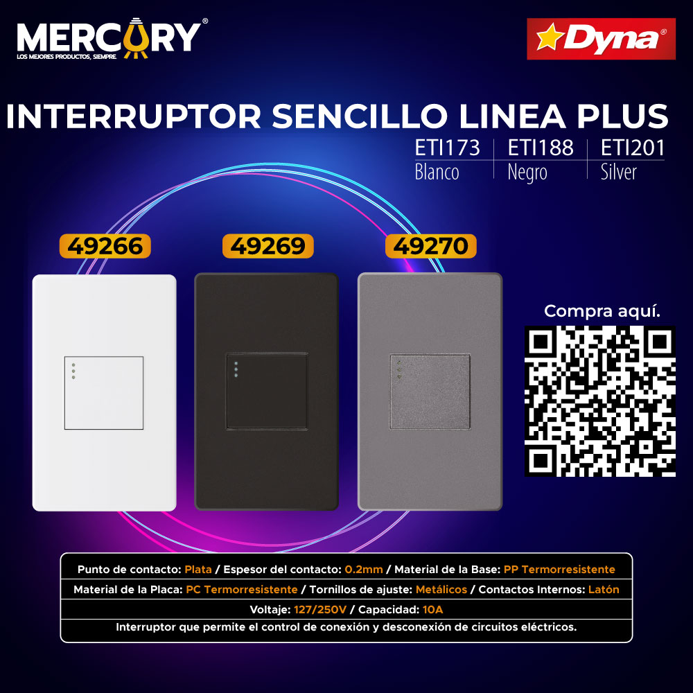 Interruptor Sencillo Conmutable de Incrustar Plus Silver ETI201