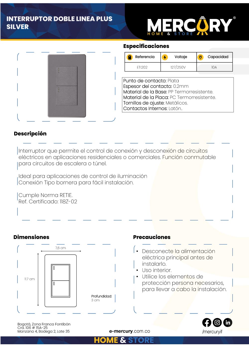 4. Interruptor Doble Conmutable de Incrustar Plus Silver ETI202