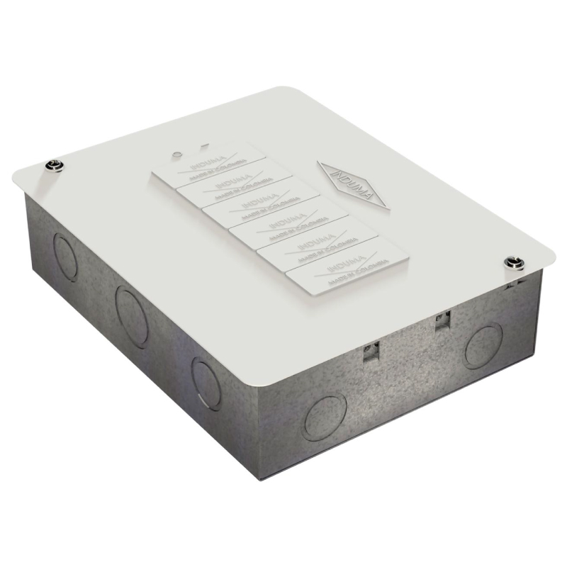 Tablero Portacircuitos de 6 Circuitos Slim, Certificado RETIE, Con Base en Lamina Galvanizada y Tapa Recubierta Con Pintura Electrostatica, Tablero Portacircuitos Certificado RETIE, Con knockouts de 1/2" - 3/4" y 1". Comaptible Con Breakers Enchufables. Bornera en Aleación de Aluminio.
