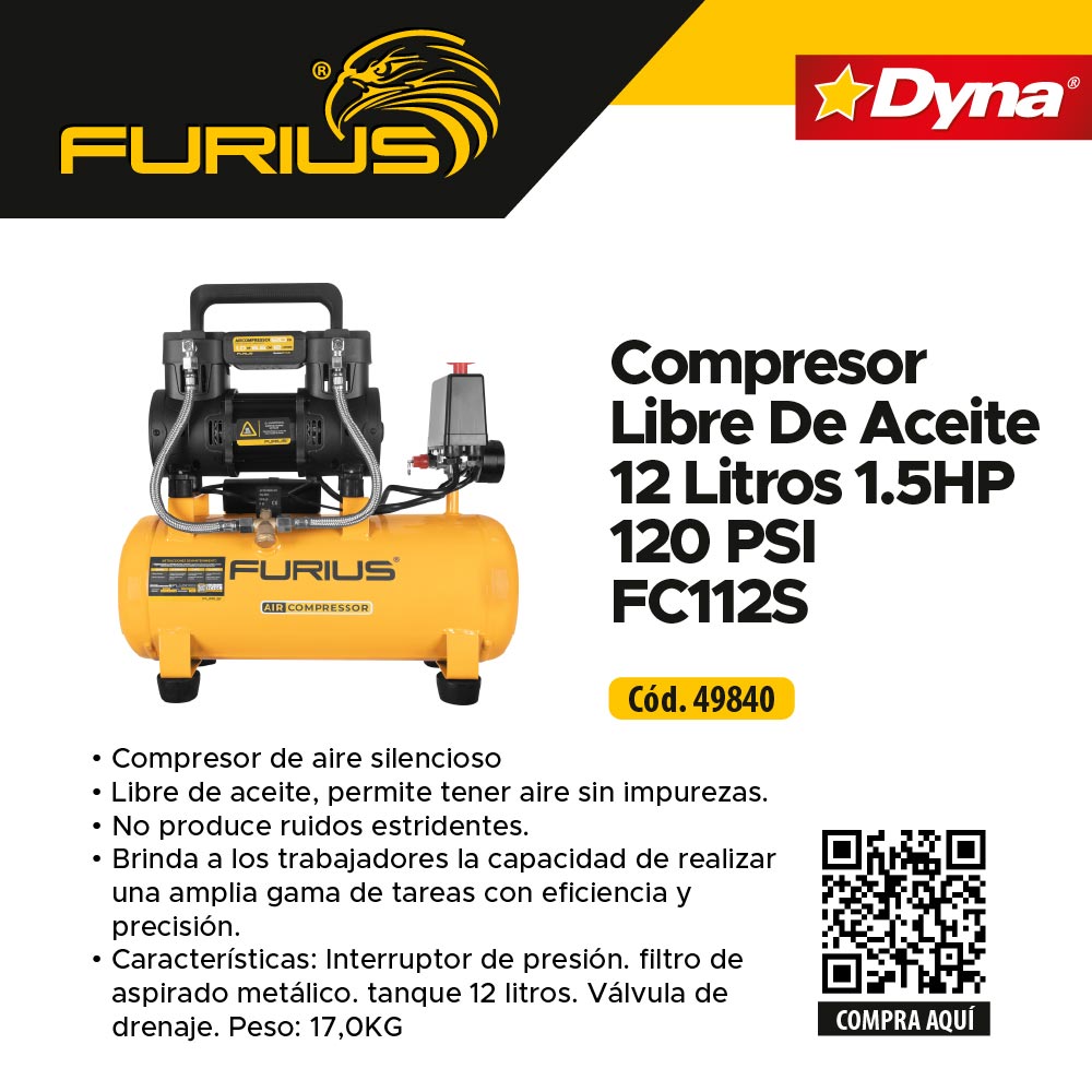 Compresor de aire lubricado con aceite. 2.5 HP de potencia. Capacidad del Tanque 25 Litros. Presión máxima de 125PSI. Caudal máximo de 7.3 CFM. Cuenta con manómetro de presión interna y de salida, regulador de presión de salida, doble salida de aire, lo cual permite disminuir o aumentar la presión según el trabajo y así mismo trabajar en dos aplicaciones al mismo tiempo. Al ser lubricado por aceite le permite mayor tiempo de trabajo continuo. Tiene llantas para transporte. Peso 21 Kg.