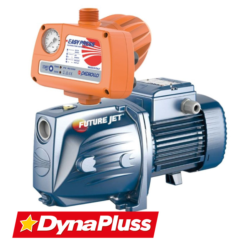 Equipo de presión electrónico recomendado para bombeo de agua limpia, con protección contra trabajo en seco, de alto rendimiento y trabajo continuo 24 horas, incluye electrobomba future jet de 1.5 Hp más regulador electrónico Easypress, caudal máximo 120 l/min, presión máxima 78 psi, diámetro de succión 1 pulgada, diámetro de descarga 1 pulgada, monofásica 110 V.