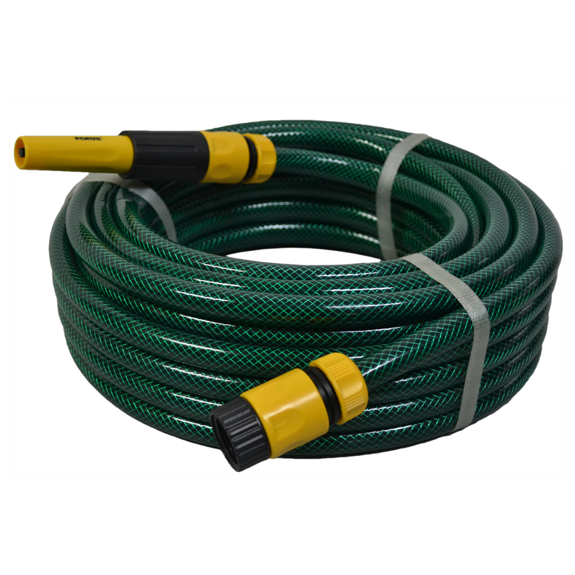 Fabricada en caucho combinado. Manguera de 1/2pg reforzada. Longitud de 15 metros. Presión de trabajo 80-100 PSI. Contiene Acoples y Pitongo. Sistema de acoples rápidos, sistema de agua stop. Útil en aplicaciones domesticas en jardinería y agrícola. Requieren un adaptador hembra no incluido.